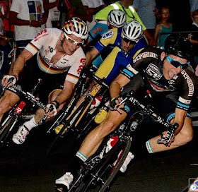 Our boys from Stradalli - Bike Aid pro cycling team trying to drop Andrè Greipel the Gorilla at last weeks night Crit in Germany. Not an easy task.